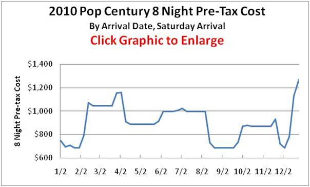 Click the image (a Pop Century Resort example) to see the impact of these price increases. (When open, click again to enlarge.) (This image is from 2010 Walt Disney World Price Seasons.)