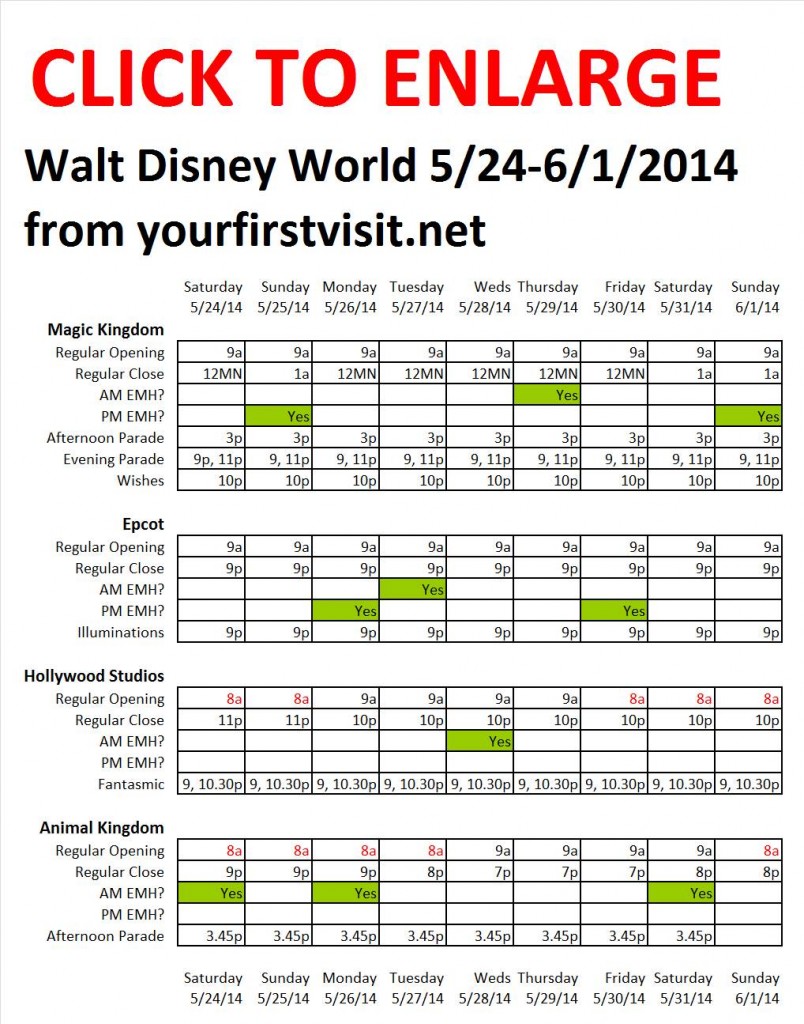 OPERATING HOURS AT WALT DISNEY WORLD 5/24-6/1/2014
