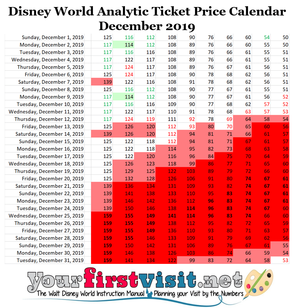 DECEMBER 2019 TICKET PRICES AT WALT DISNEY WORLD