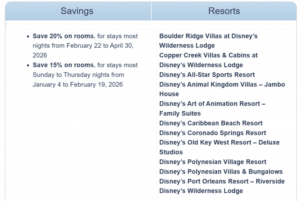 New Disney World Room Rate Deal for January–April 2026