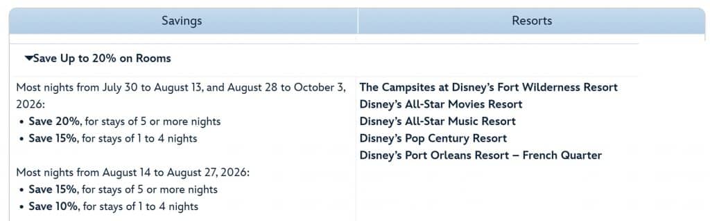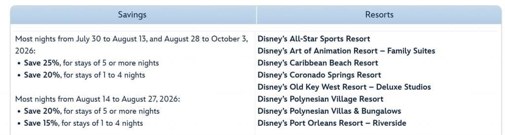New Disney World Room Rate Deal for July 30 through October 3, 2026