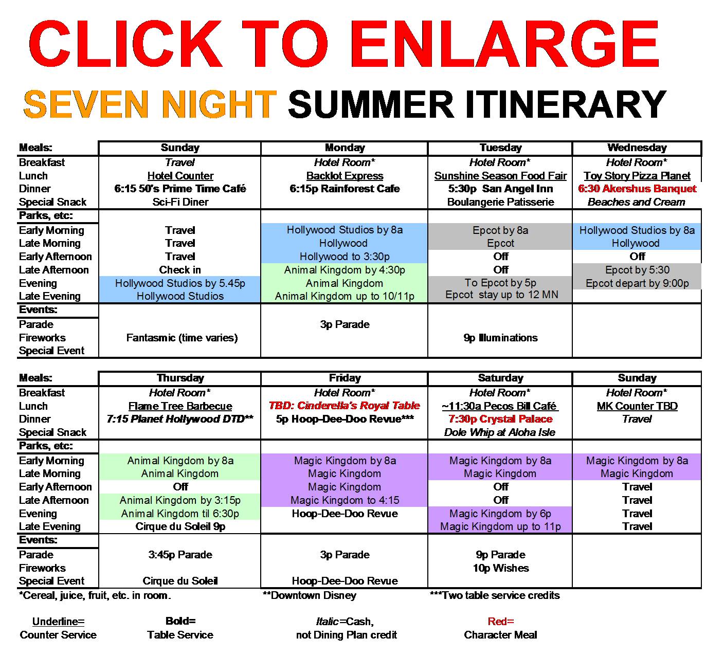 SEVEN NIGHT WALT DISNEY WORLD SUMMER ITINERARY