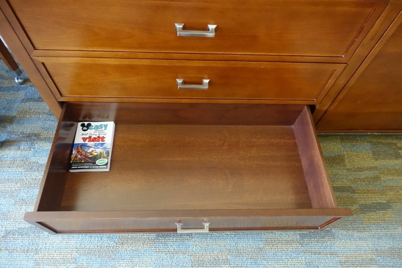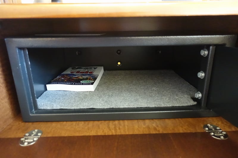 In the space that would be the 6th drawer you will find a safe. My book is 6″ by 9″–showing how large this safe is.
