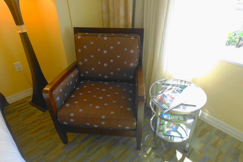 And frankly, the color scheme and decor (how did you like that easy chair?) are at best uninteresting. Another Hilton property at Disney World that also has access to the two key perks, the Hilton Buena Vista Palace, has better accommodations, with balconies and divided baths.