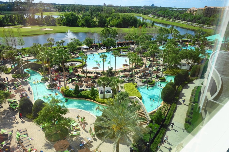 The Disney view rooms look towards Disney’s Hollywood Studios and Epcot; Golf view rooms look in the same direction, except from a lower level; rooms without specified views look out over a nature preserve.