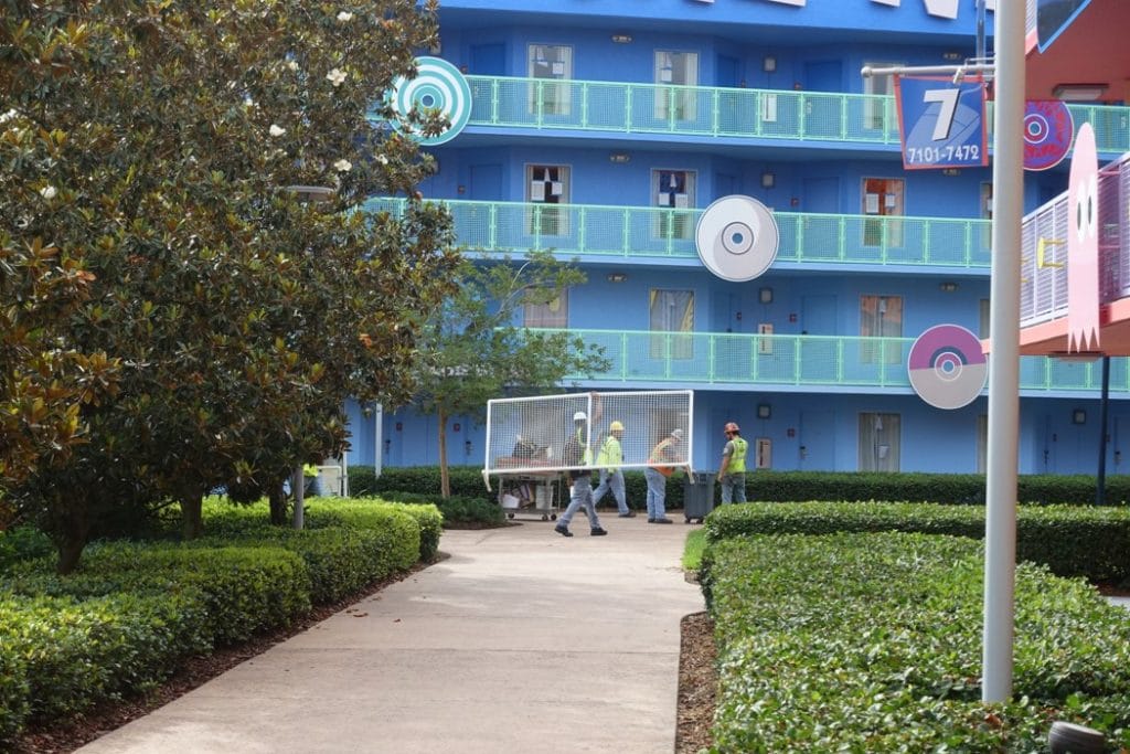 As of this morning (6/5) the first building to be refurbed at Pop Century, the 90s area Building 8, had not yet re-opened. [Update: Building 8 opened later that week!]