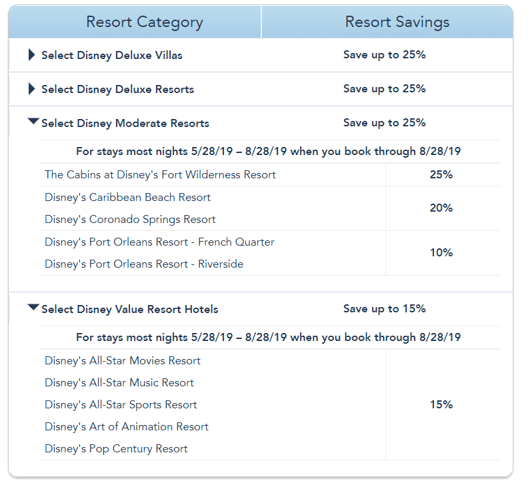Resorts excluded from this offer are at the values All-Star Movies and the Little Mermaid rooms at Art of Animation, and at the moderates, Port Orleans French Quarter.